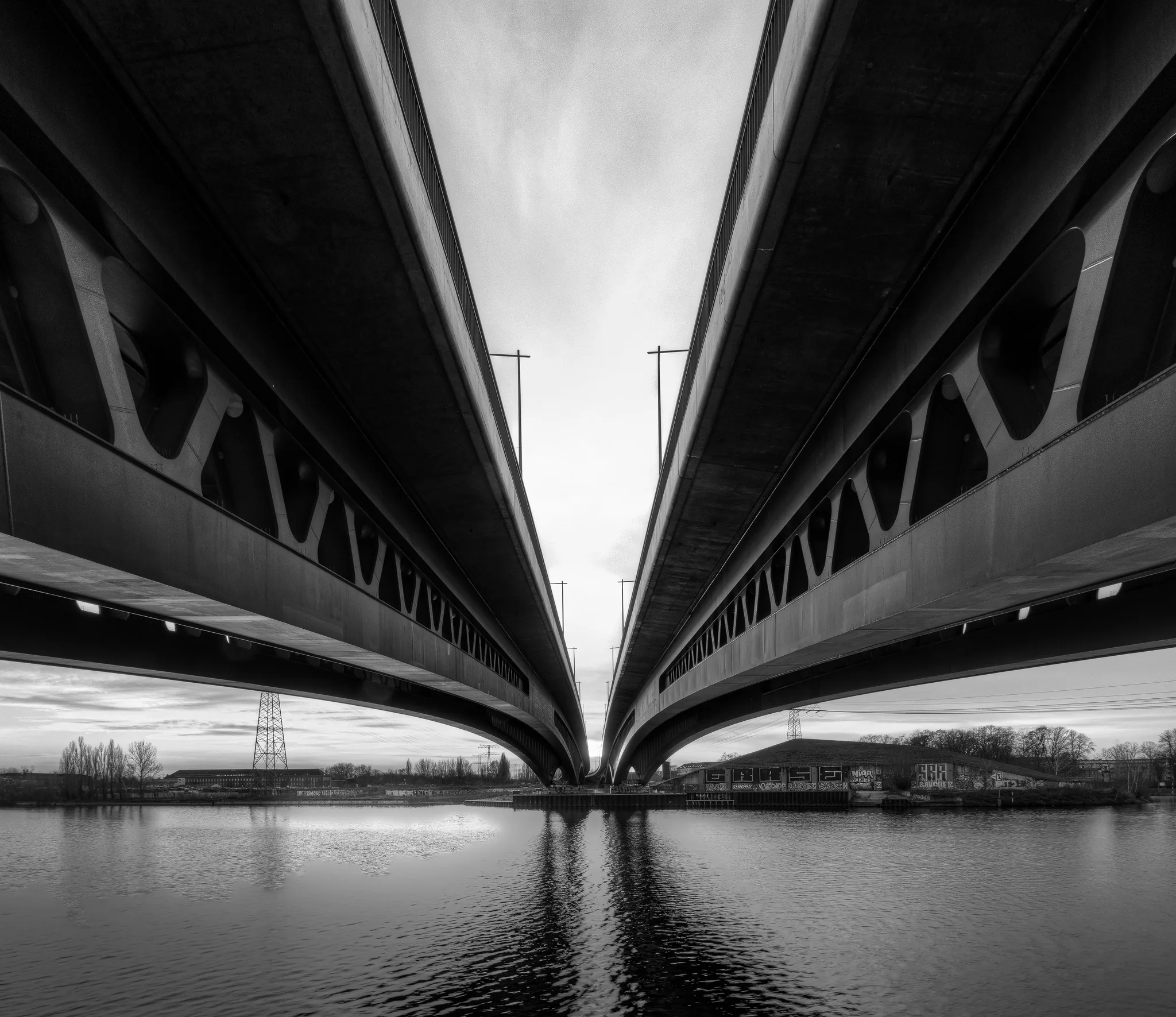 Die Aufnahme entstand im März 2021unterhalb der Minna-Todenhagen-Brücke in schwarz/weiß. Mit dem Blick in Richtung der Bundestrasse 96a